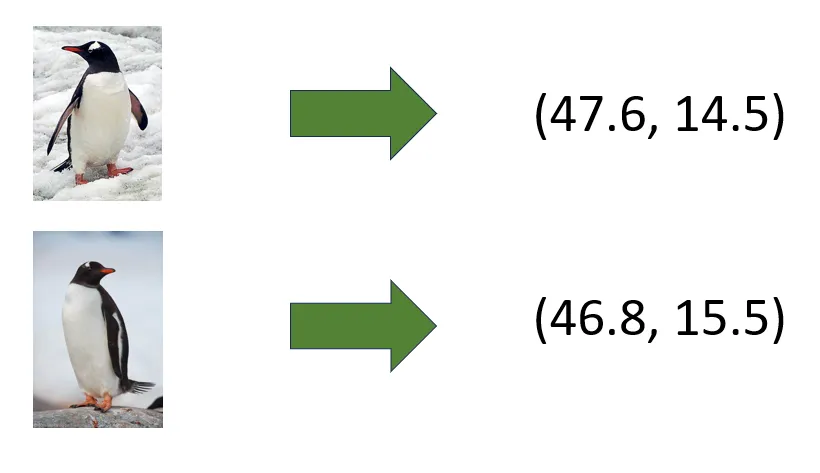 Sea cual sea el tipo de datos que alimente a un algoritmo de Machine Learning (textos, imágenes, sonidos, vídeos, …) antes de ser procesados por este deben ser codificados en un conjunto de números, que es lo que una computadora puede entender. Para que entendamos este concepto fíjate en el siguiente ejemplo con pingüinos antárticos.
